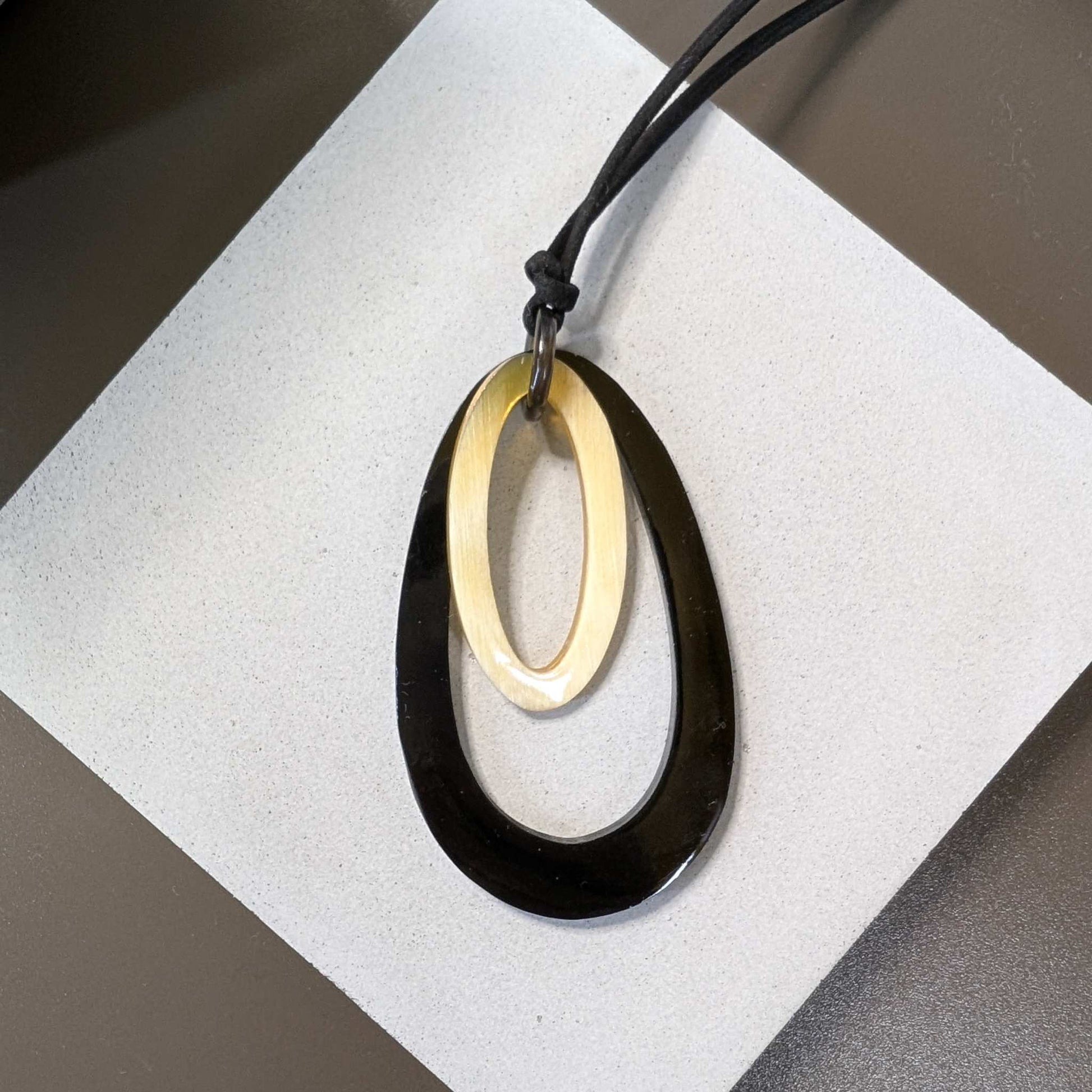 シンプルかつ洗練された2トーンデザインのペンダント。