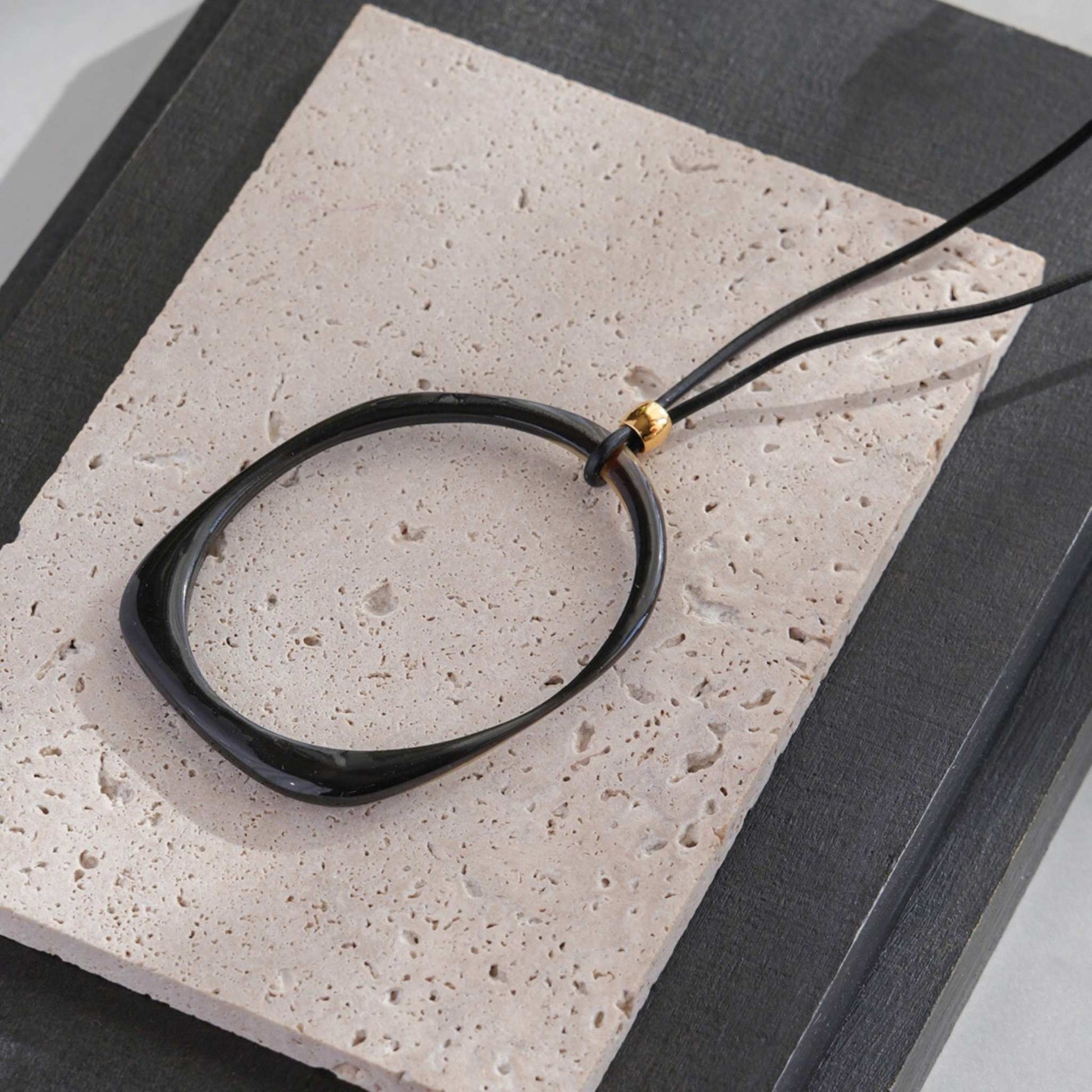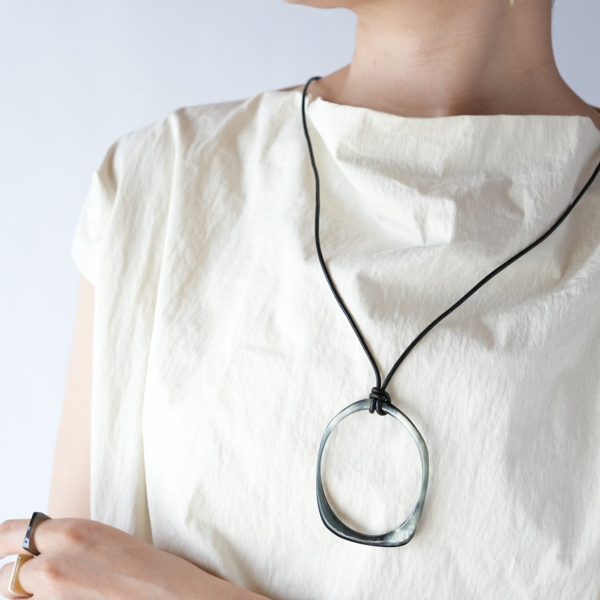 やわらかなイレギュラーサークルが胸元に浮かぶペンダント