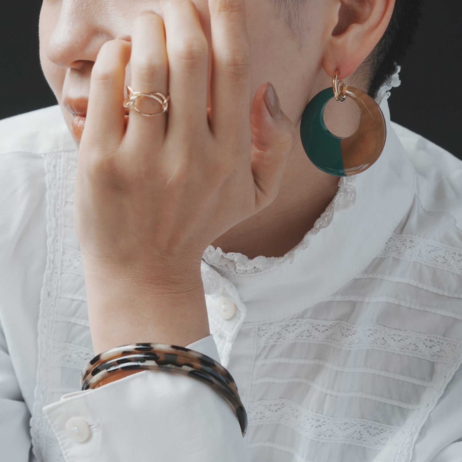 ヴィヴィッドなグリーンがカラーリングされたピアス。