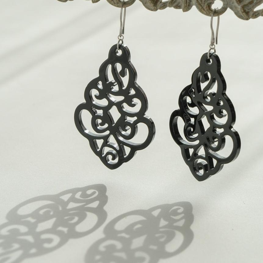 伝統的な模様とモダンな感覚が融合したモチーフのピアス。