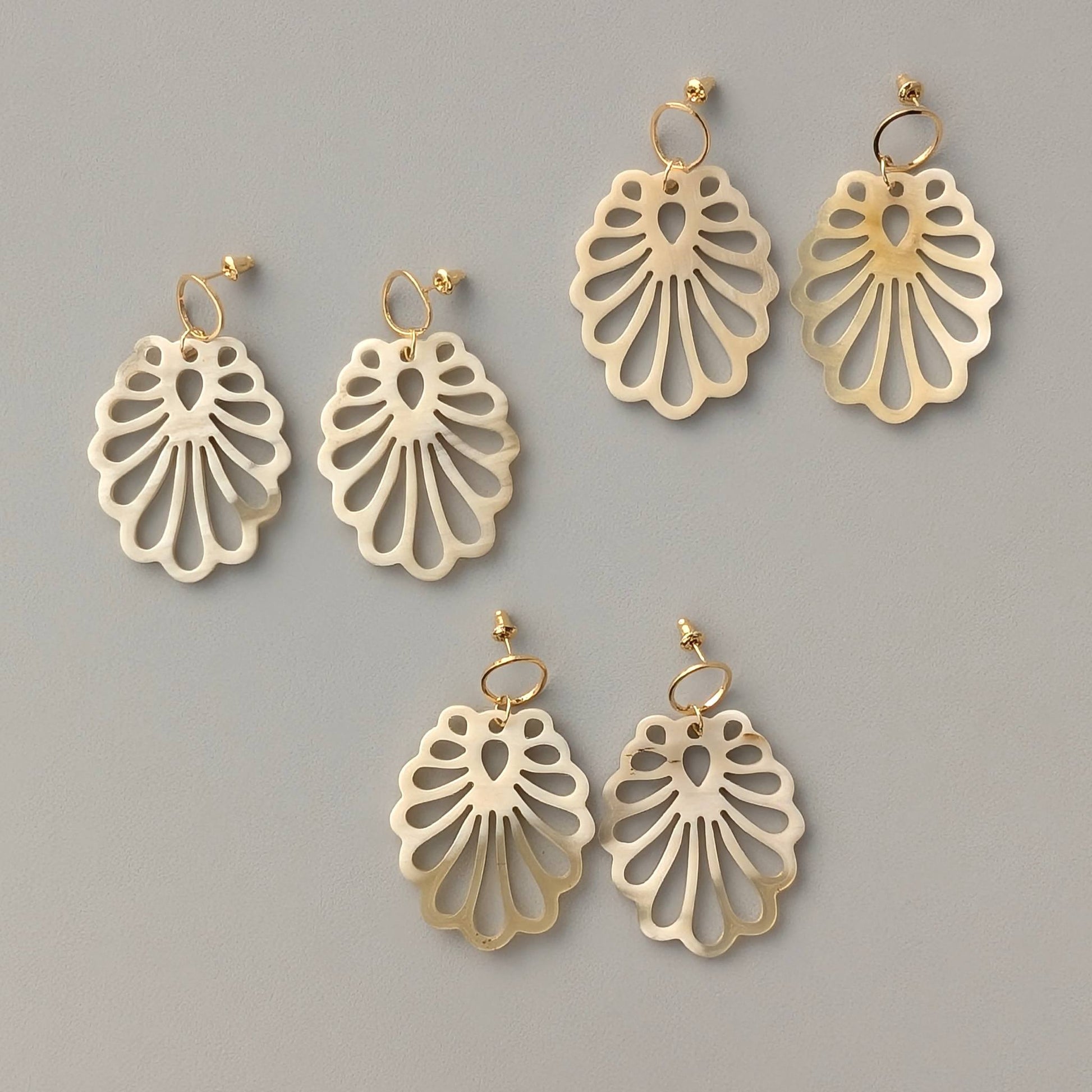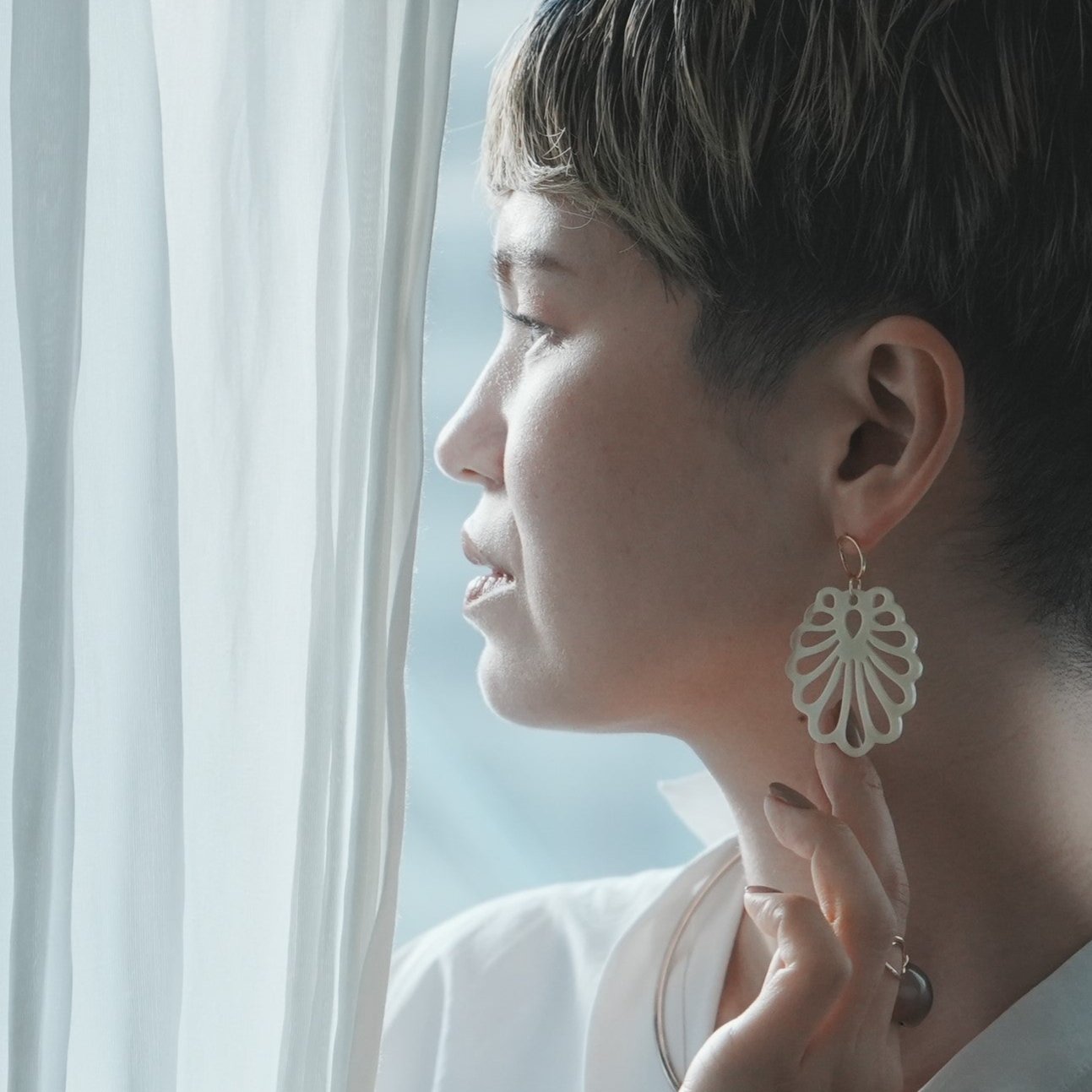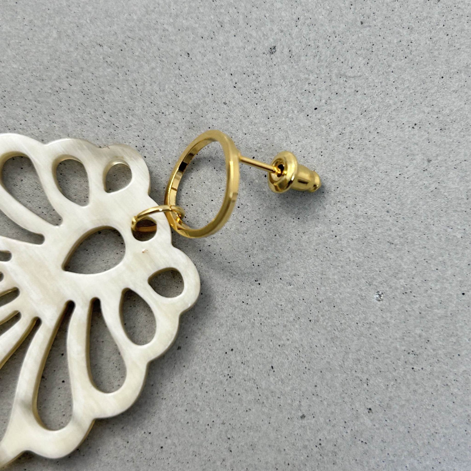 色味はバッファローホーンらしいナチュラルなアイボリーホワイト。肌なじみが良く温かみがあります。個性のあるデザインですが、主張は控えめ。デイリーコーデに合わせるだけで、上品に女性らしく仕上げてくれるアイテムです。