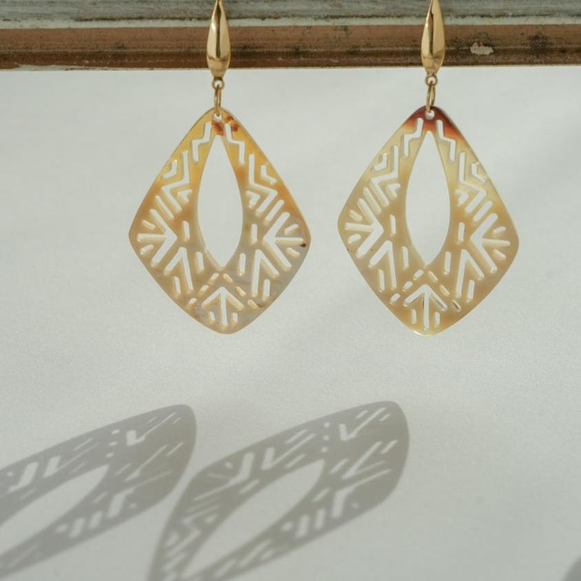砂漠の砂を思わせる絶妙な色合いと、繊細な職人技が融合したピアス。