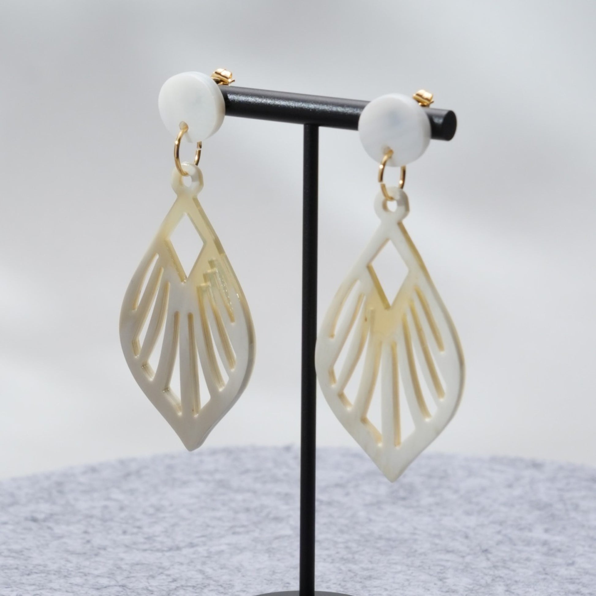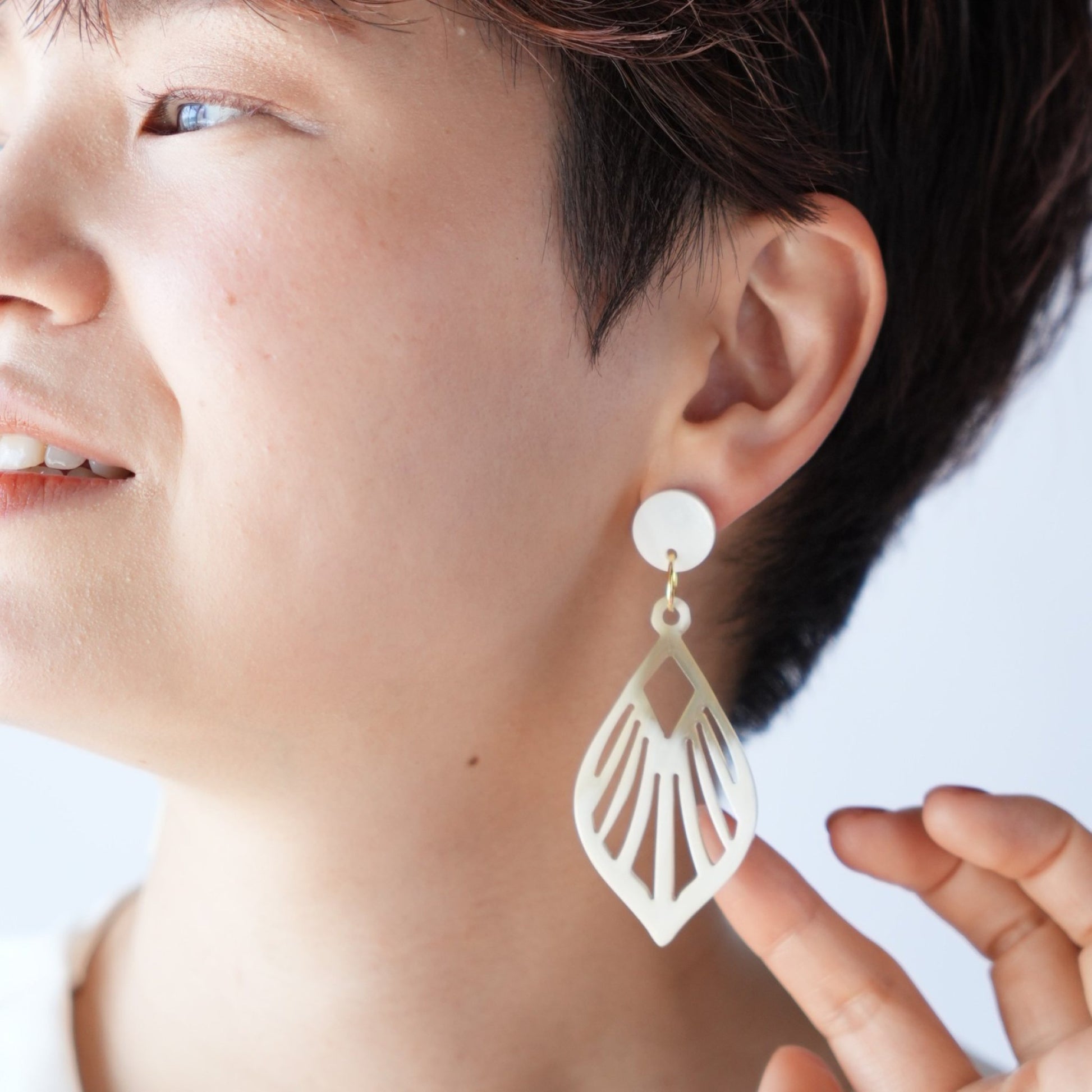 柔らかな光沢を宿すシェルと、バッファローホーンに施された透かし彫りのカットワークが出会って生まれた、繊細な光の模様