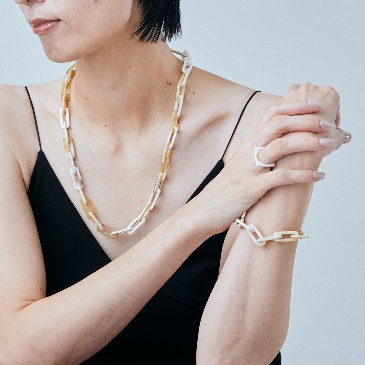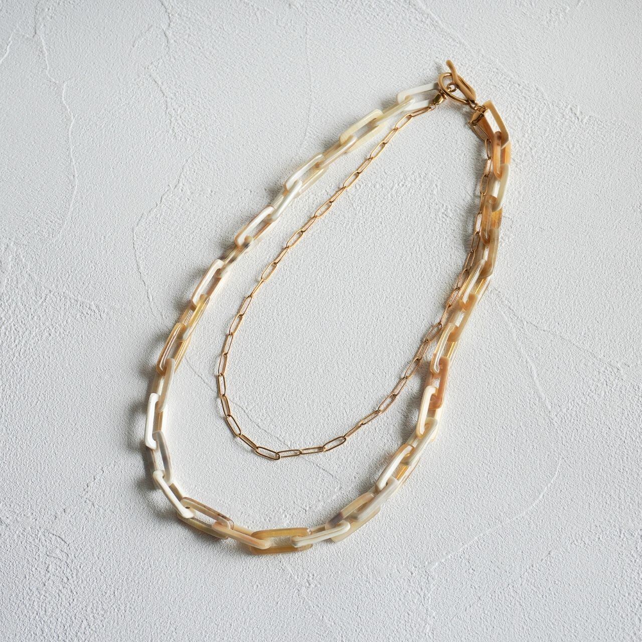 小さなスクエアのバッファローホーンチェーンネックレス