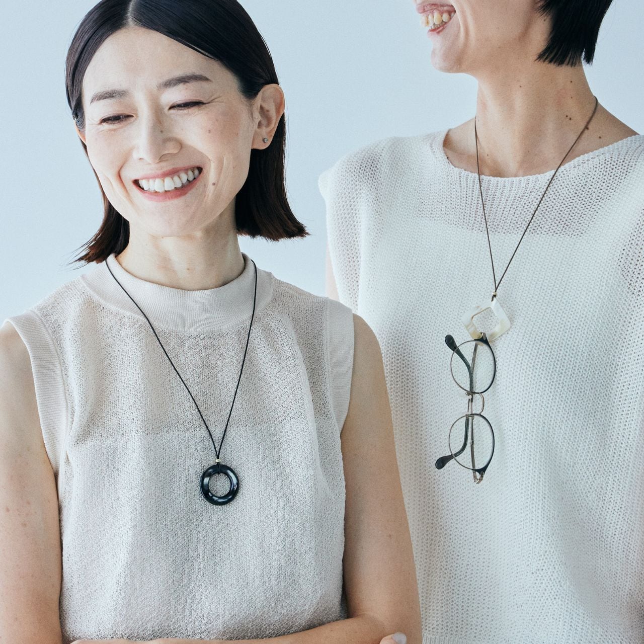 メガネをかけていない時は、ファッションアイテムとして メガネをかけたい時は、グラスホルダーとして 機能性とビジュアルを兼ね備えたデザイン シンプルながら天然素材の一点モノの表情が 何気ない日のポイントに 〔素材〕 本体:バッファローホーン コード:国産コットンコード 金具:SUS304,18KGP 〔サイズ〕 本体:最大80cm *スライダービーズ付 重さ:約2.0g ※天然素材のため、色味や形、重さに若干の個体差がございます。天然素材ならではの個性をお楽しみください。