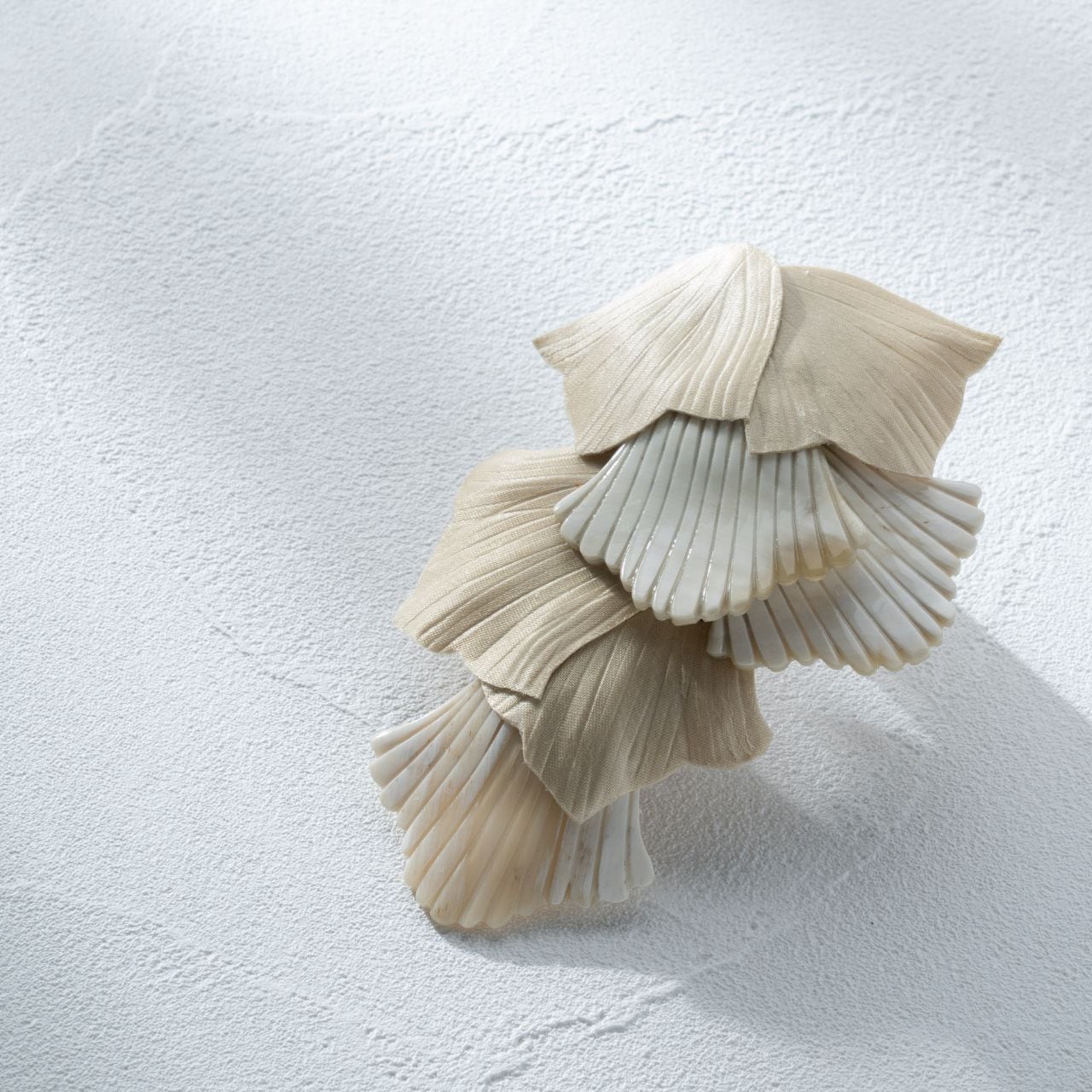 ホーンパーツと、サテン生地から仕上げたモチーフを