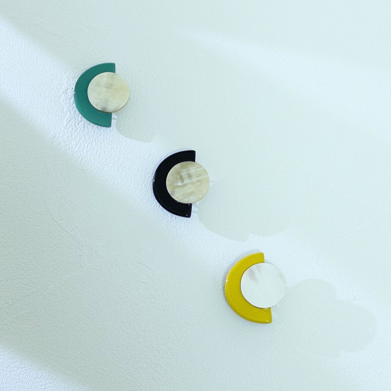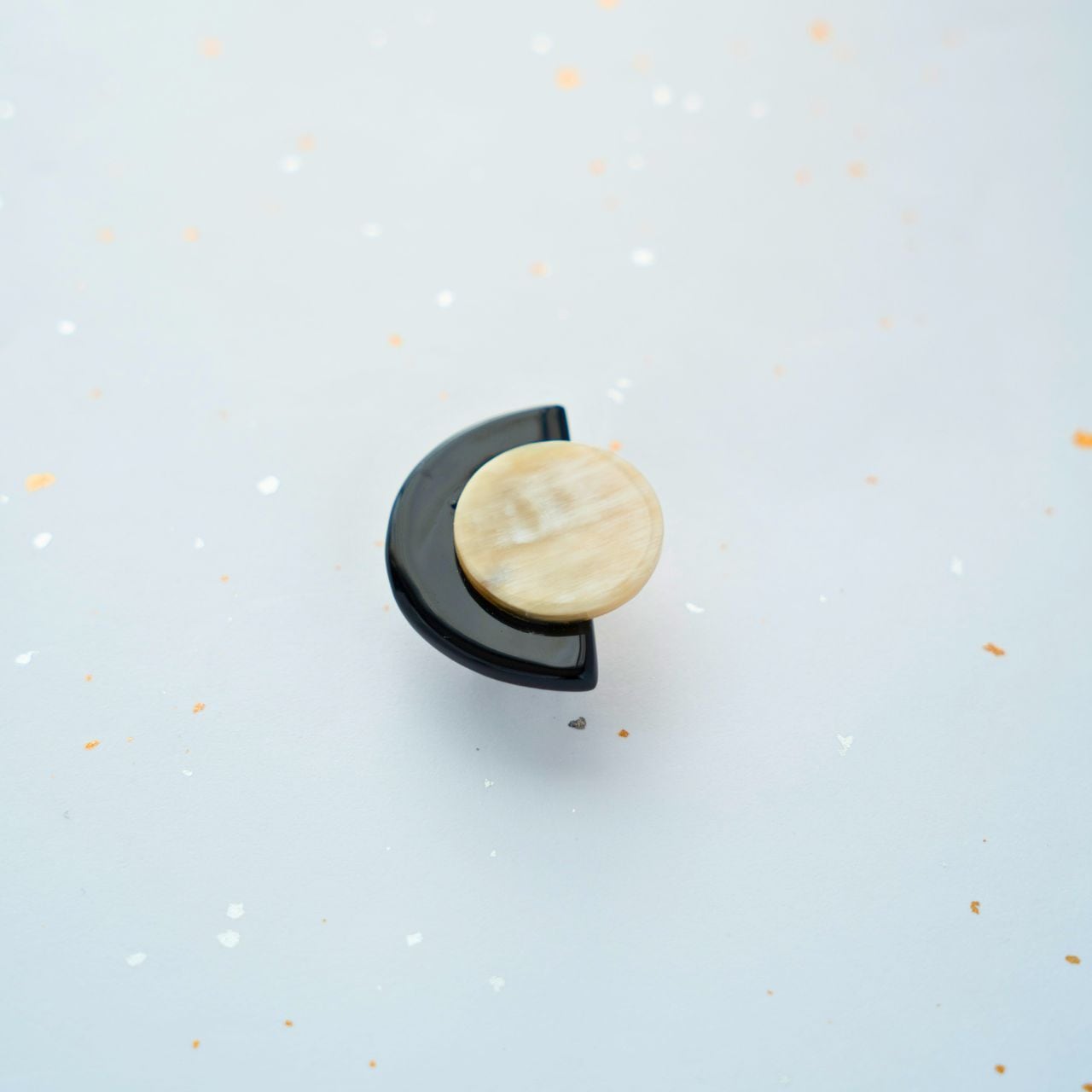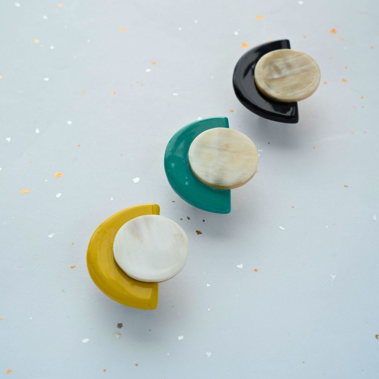 ホーンの自然の模様を雲にみたてた 半月に雲 雲紋の帯留め 明るい色味も楽しめる三色をご用意いたしました 〔素材〕 バッファローホーン 〔サイズ〕 本体:横3.0cm✕縦3.5cm 金具:内1.3cm 重さ:約5.5g ※天然素材のため、色味や形、重さに若干の個体差がございます。 *写真の着物は竺仙製